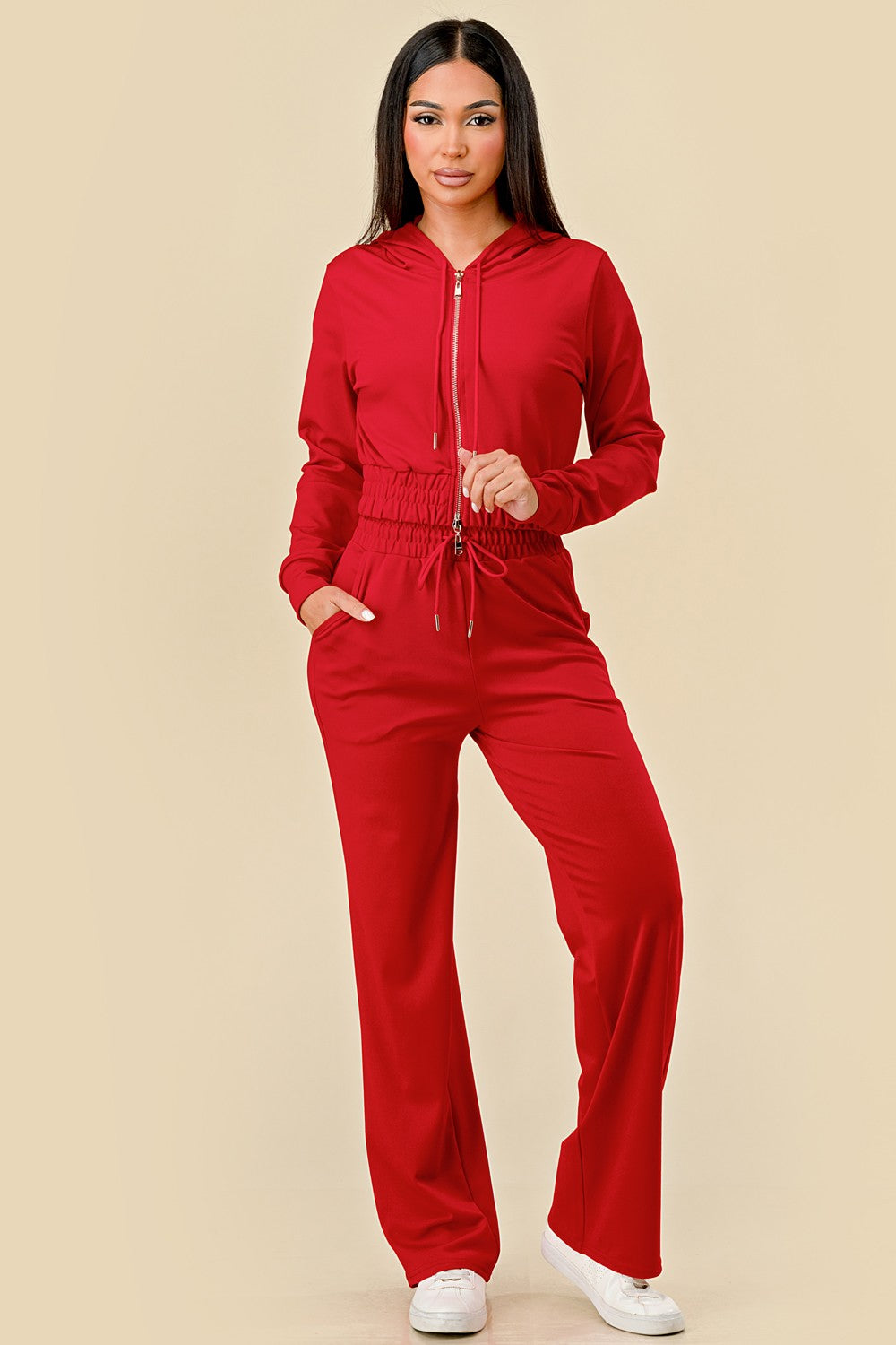 - Double zipper top with hoodie and drawstrings